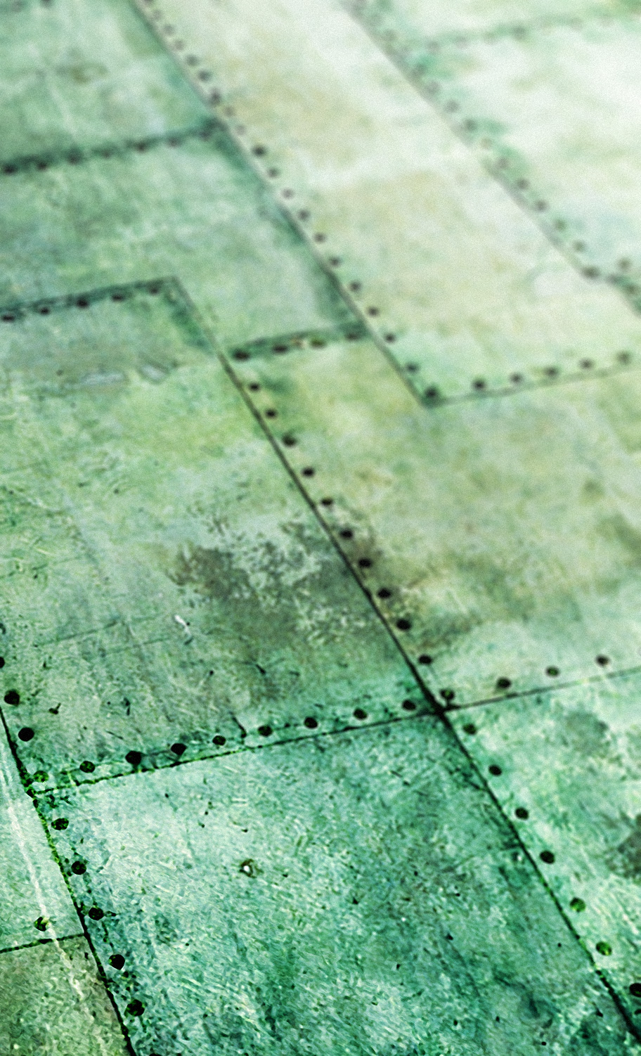 Detalle de la superficie de Chapa acabado en cobre verdoso |